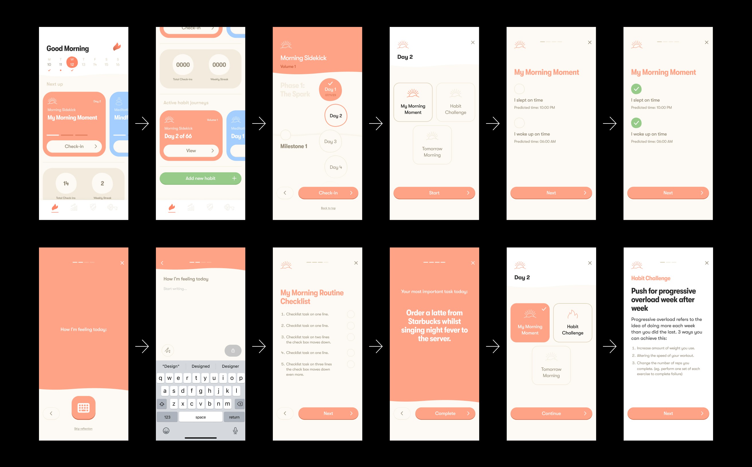 Layout, hierarchy, and pacing were intentionally designed to reduce friction, build momentum, and support daily habit formation.